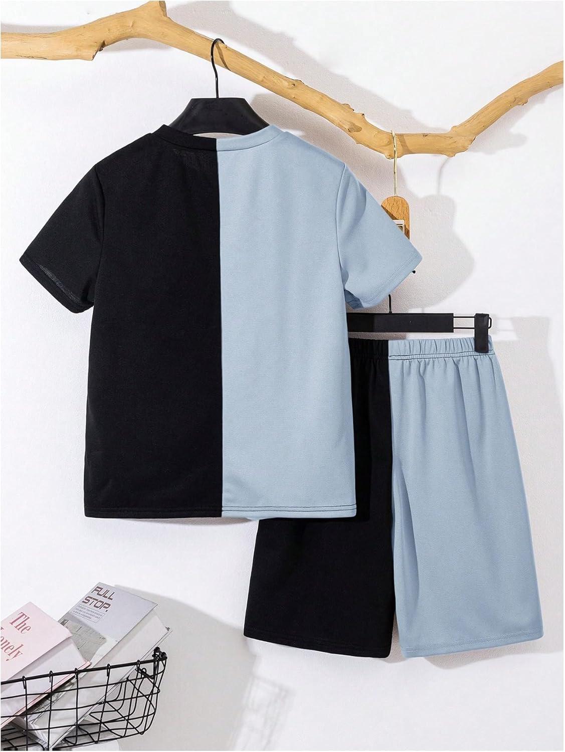 Boy's 2 Piece Outfits Floral Print Short Sleeve Crewneck T Shirt and Shorts Set Summer Outfits(Blue)