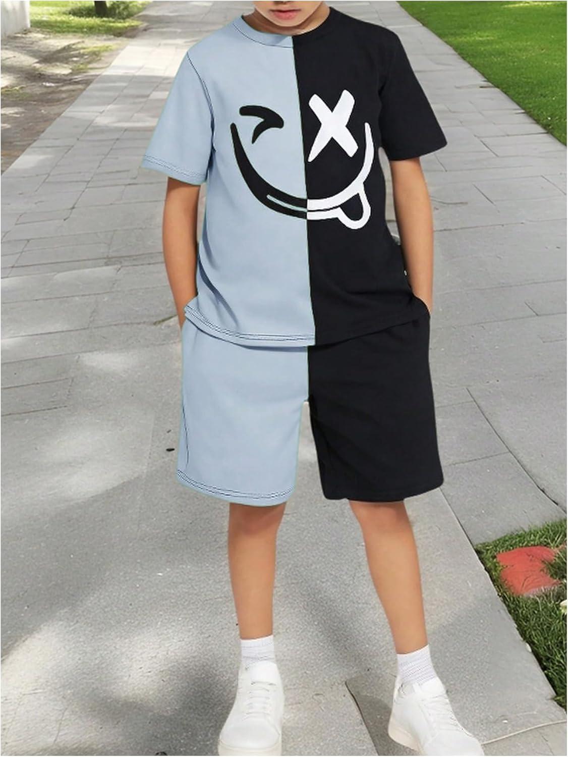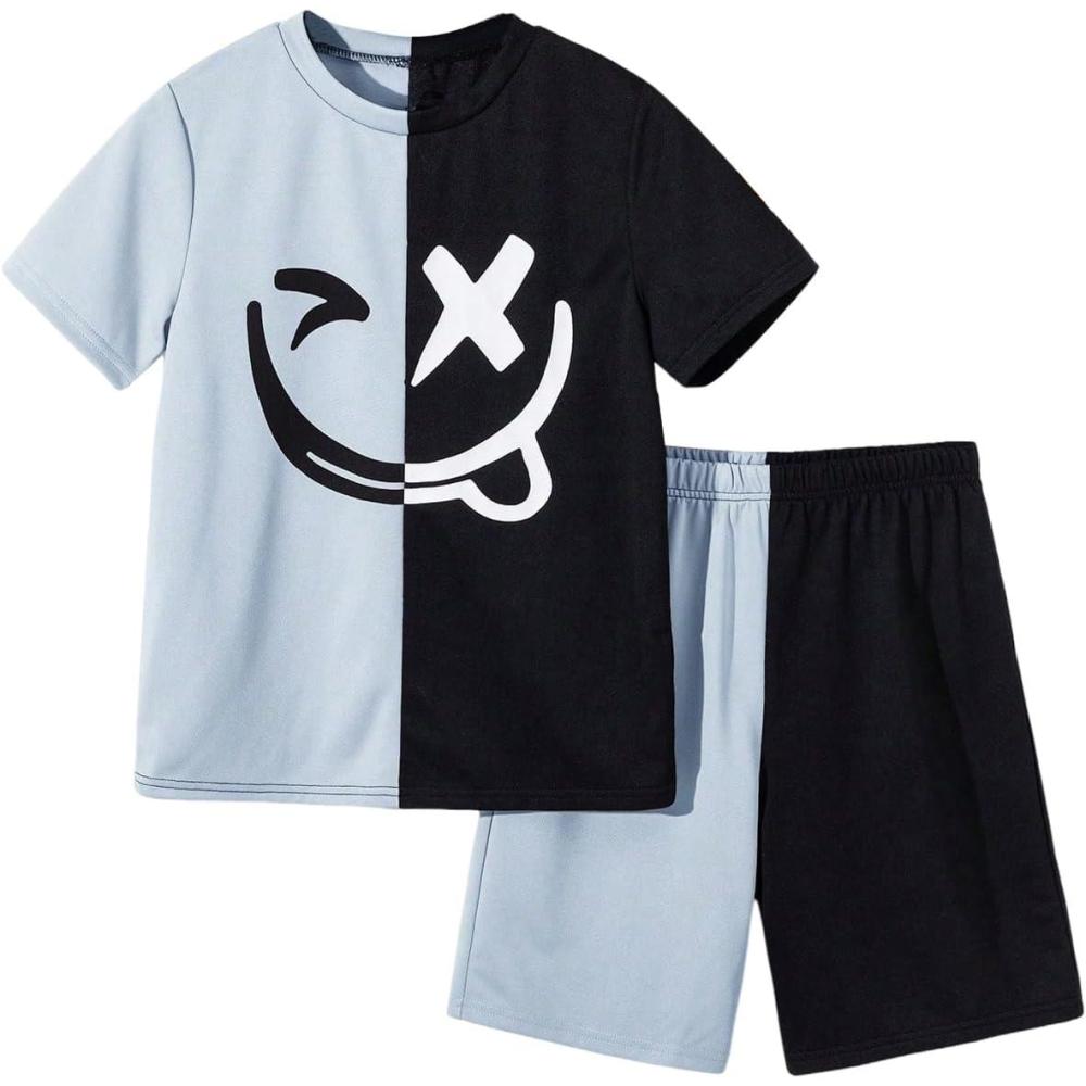 Boy’s 2 Piece Outfits Floral Print Short Sleeve Crewneck T Shirt and Shorts Set Summer Outfits(White Graphic)