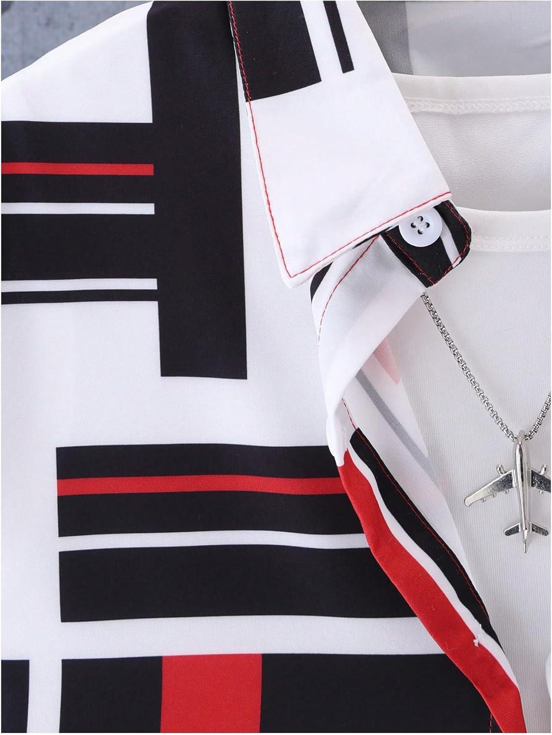 Boy’s 2 Piece Outfits Paisley Geo Graphic Print Short Sleeve Button Down Shirt and Shorts Set(Red)