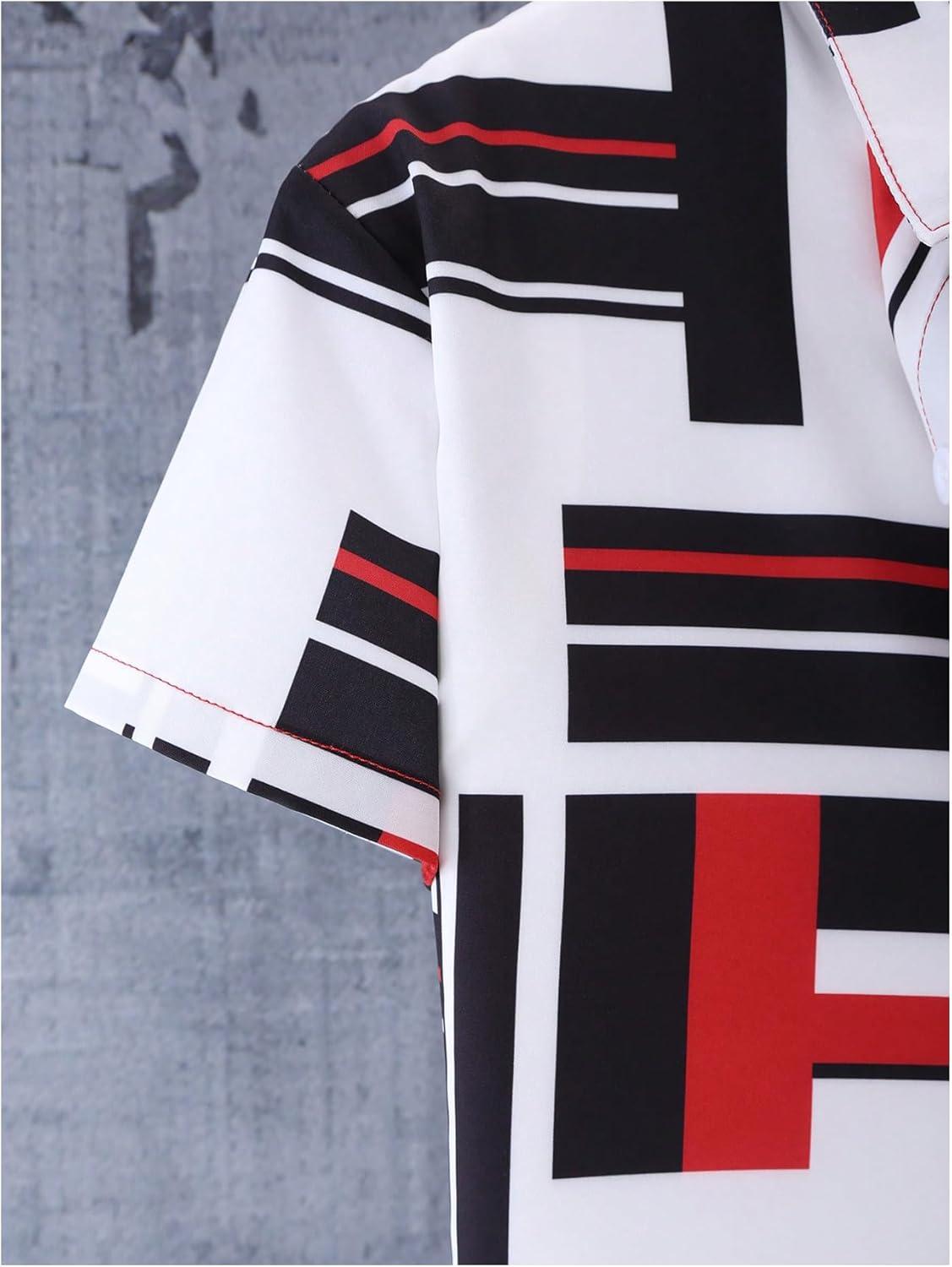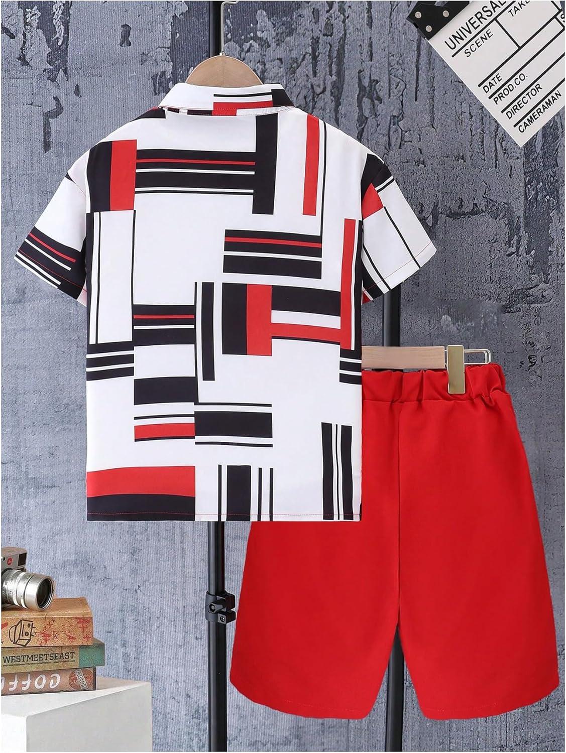 Boy's 2 Piece Outfits Paisley Geo Graphic Print Short Sleeve Button Down Shirt and Shorts Set(Red)