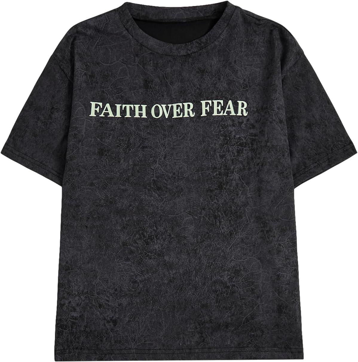 Boy's Letter Print Graphic Tees Short Sleeve Vintage T Shirt Round Neck Summer Tops Streetwear(Dark Grey Letter)