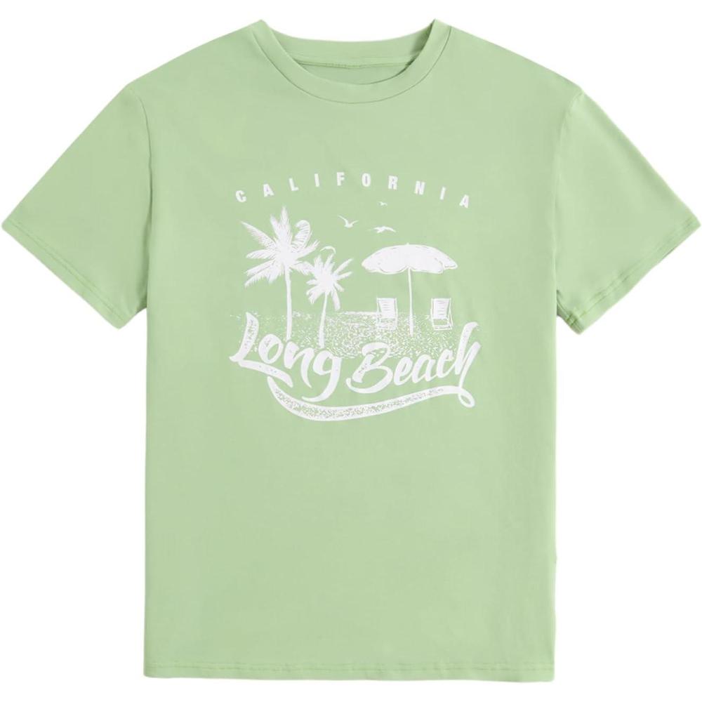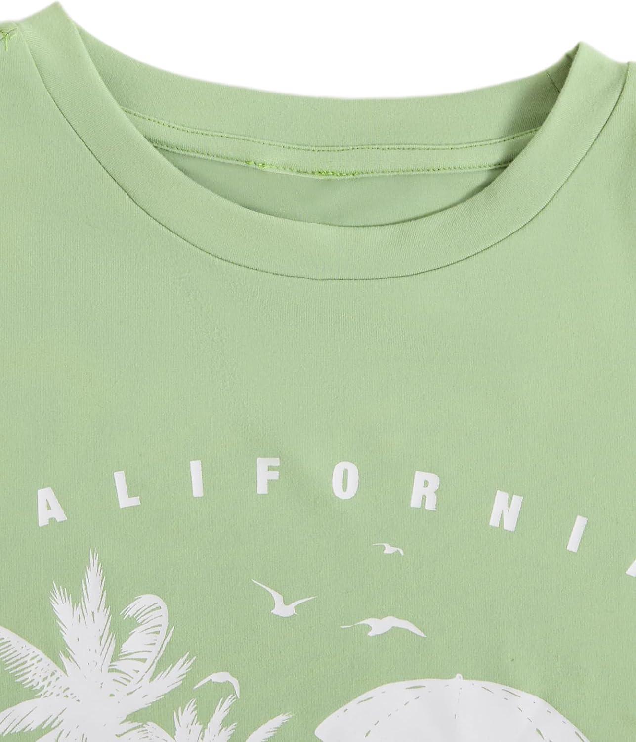 imageCOZYEASE Girls Letter Graphic Tees Short Sleeve Crewneck Oversized T Shirts Summer Clothes for GirlsMint Green Palm Tree Print