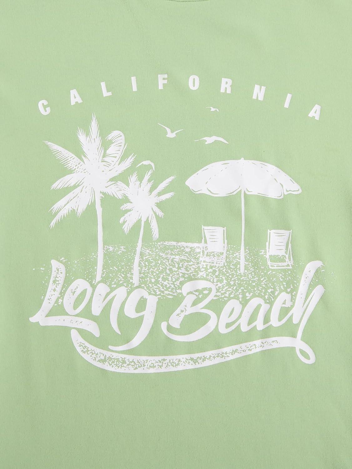 COZYEASE Girls’ Letter Graphic Tees Short Sleeve Crewneck Oversized T Shirts Summer Clothes for Girls(Mint Green Palm Tree Print)