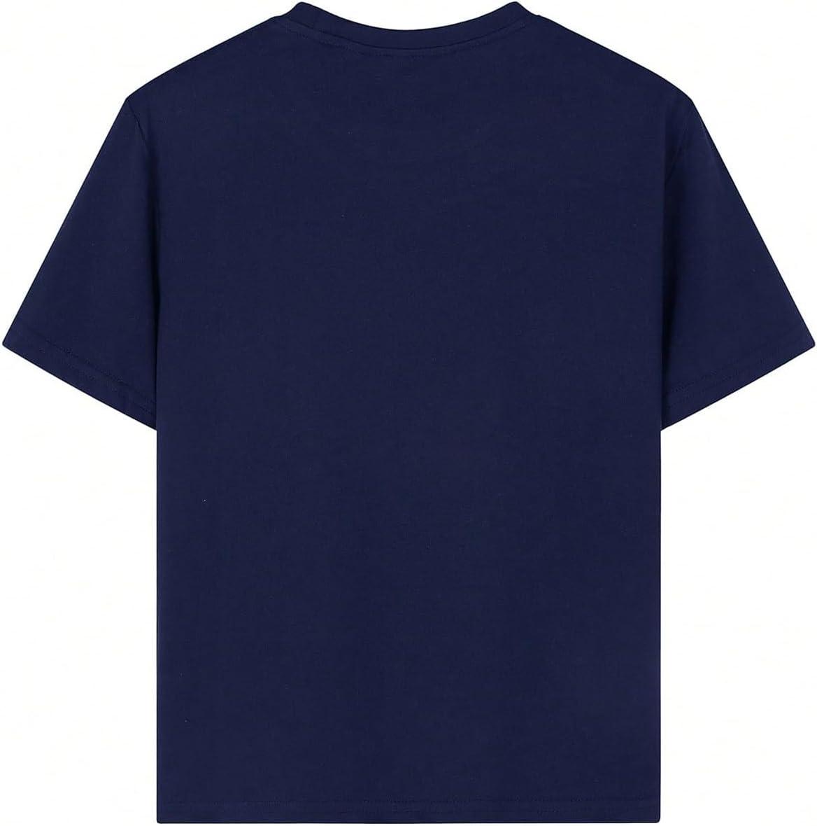 Girl's Cherry Leopard Shirt Short Sleeve Loose Cute Summer T Shirt Trendy Aesthetic Baggy Tops(Deep Blue)