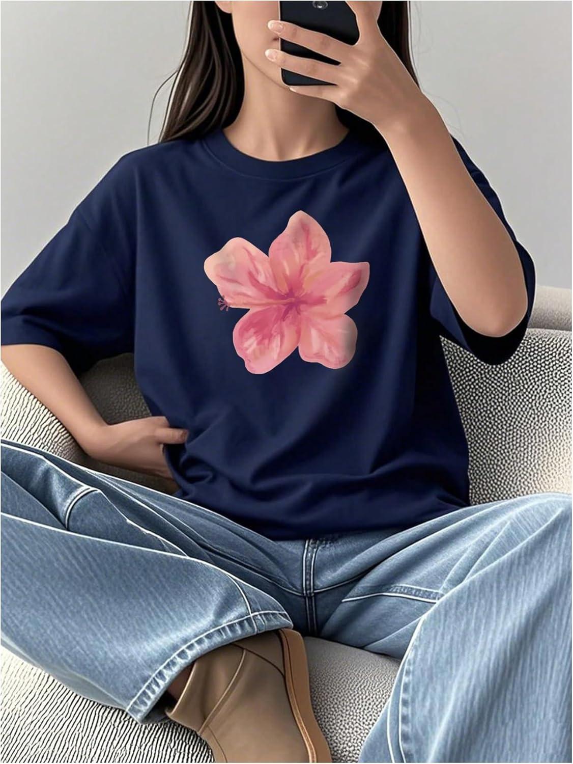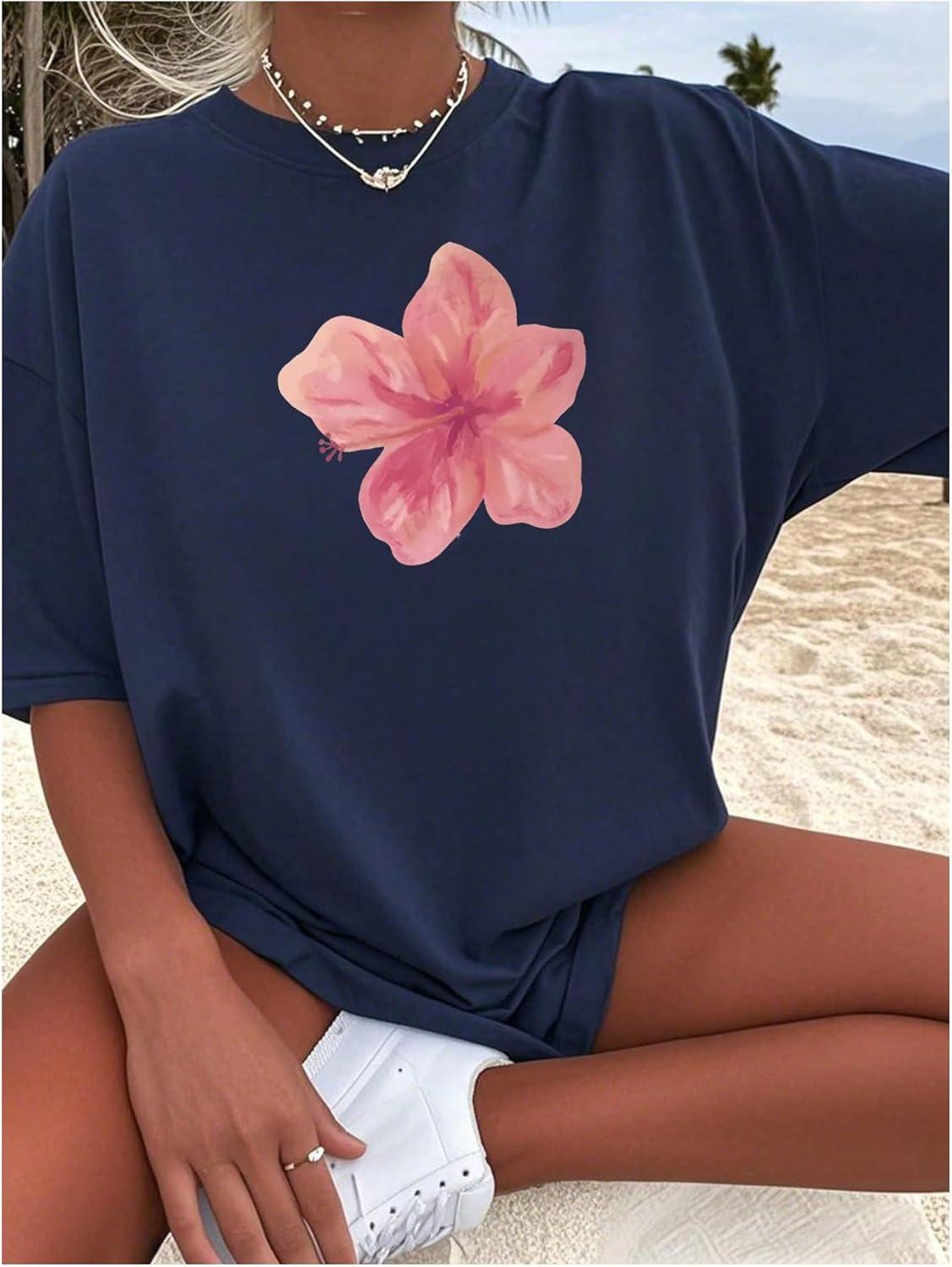 Girl’s Cherry Leopard Shirt Short Sleeve Loose Cute Summer T Shirt Trendy Aesthetic Baggy Tops(Floral Apricot)