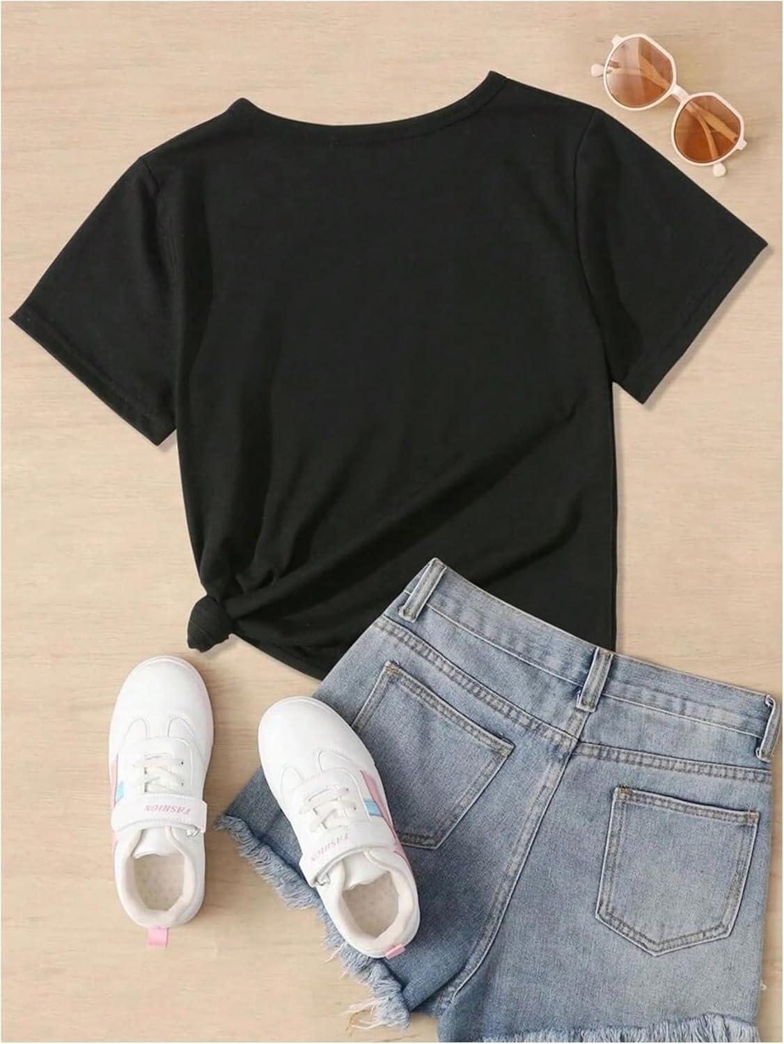 Girl’s Cherry Leopard Shirt Short Sleeve Loose Cute Summer T Shirt Trendy Aesthetic Baggy Tops(Floral Black)