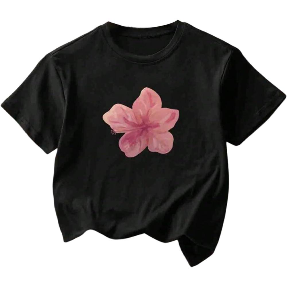 Girl's Cherry Leopard Shirt Short Sleeve Loose Cute Summer T Shirt Trendy Aesthetic Baggy Tops(Floral Black)