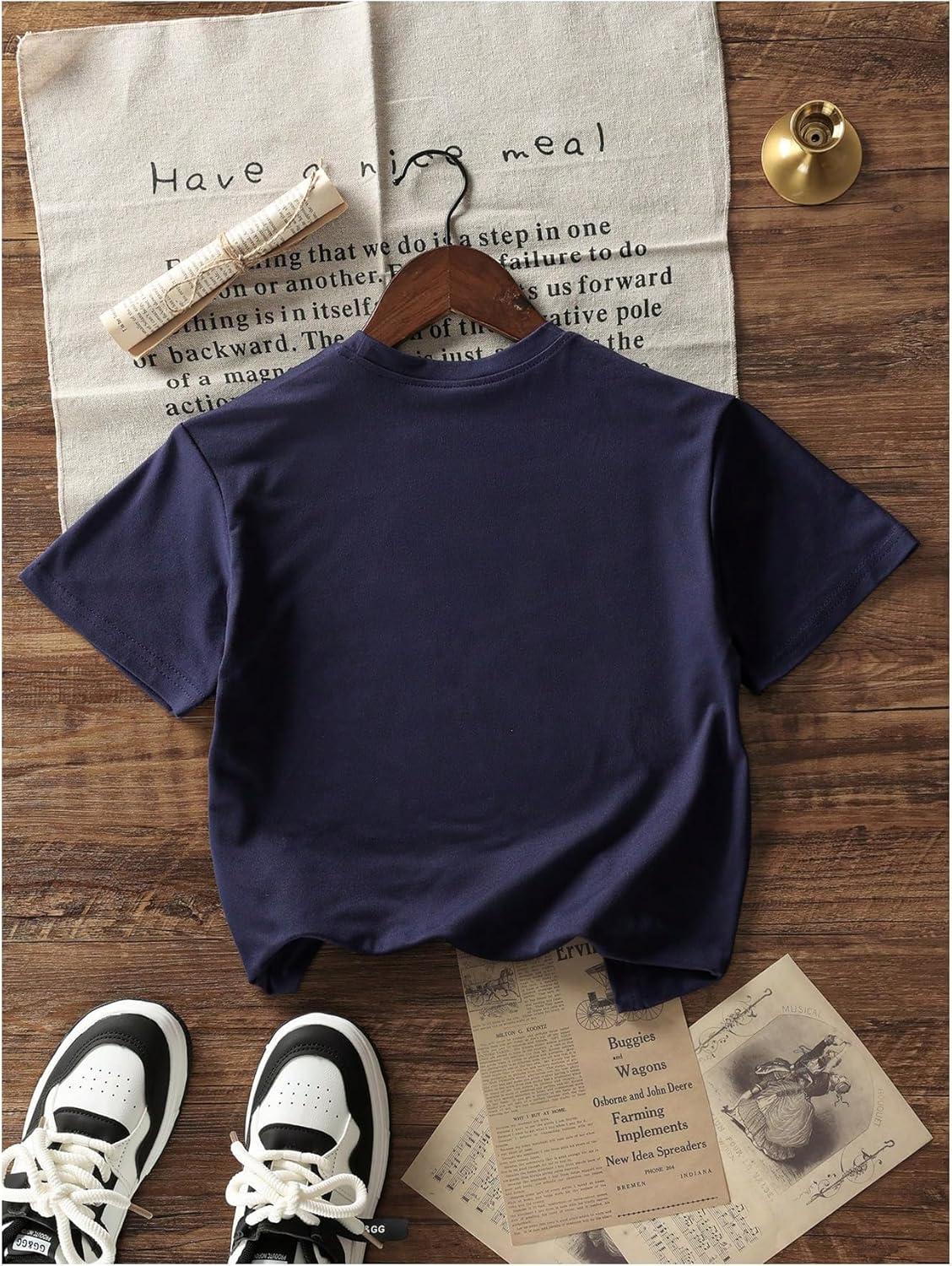 Girl's Cherry Leopard Shirt Short Sleeve Loose Cute Summer T Shirt Trendy Aesthetic Baggy Tops(Floral Deep Blue)