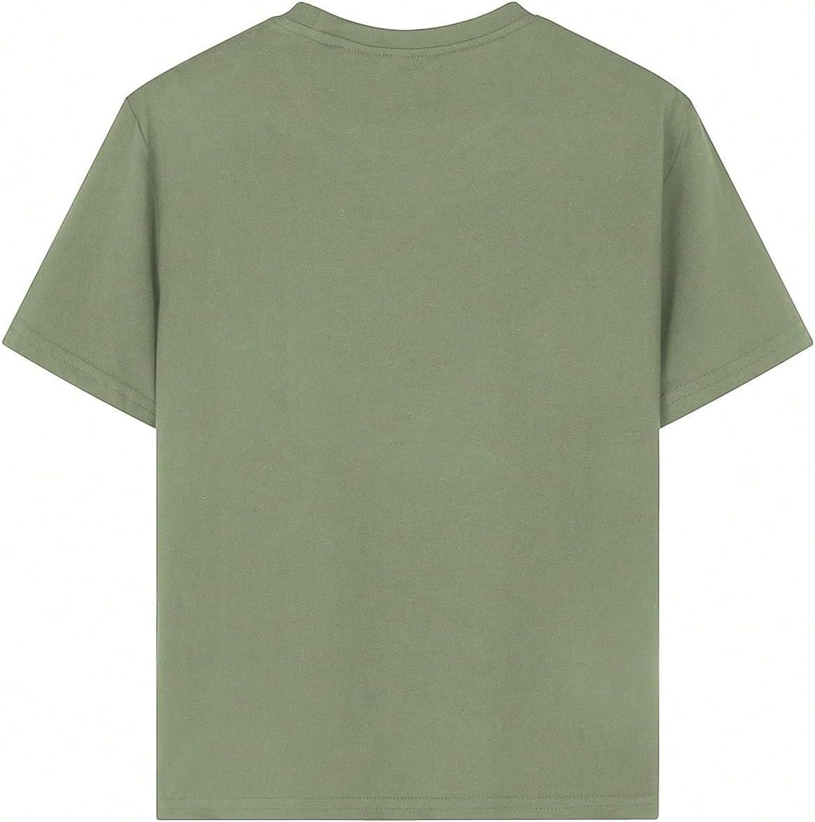Girl’s Cherry Leopard Shirt Short Sleeve Loose Cute Summer T Shirt Trendy Aesthetic Baggy Tops(Green)