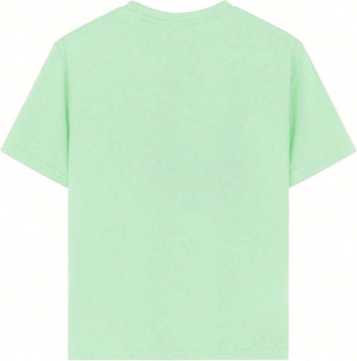 Girl's Cherry Leopard Shirt Short Sleeve Loose Cute Summer T Shirt Trendy Aesthetic Baggy Tops(Mint Green)