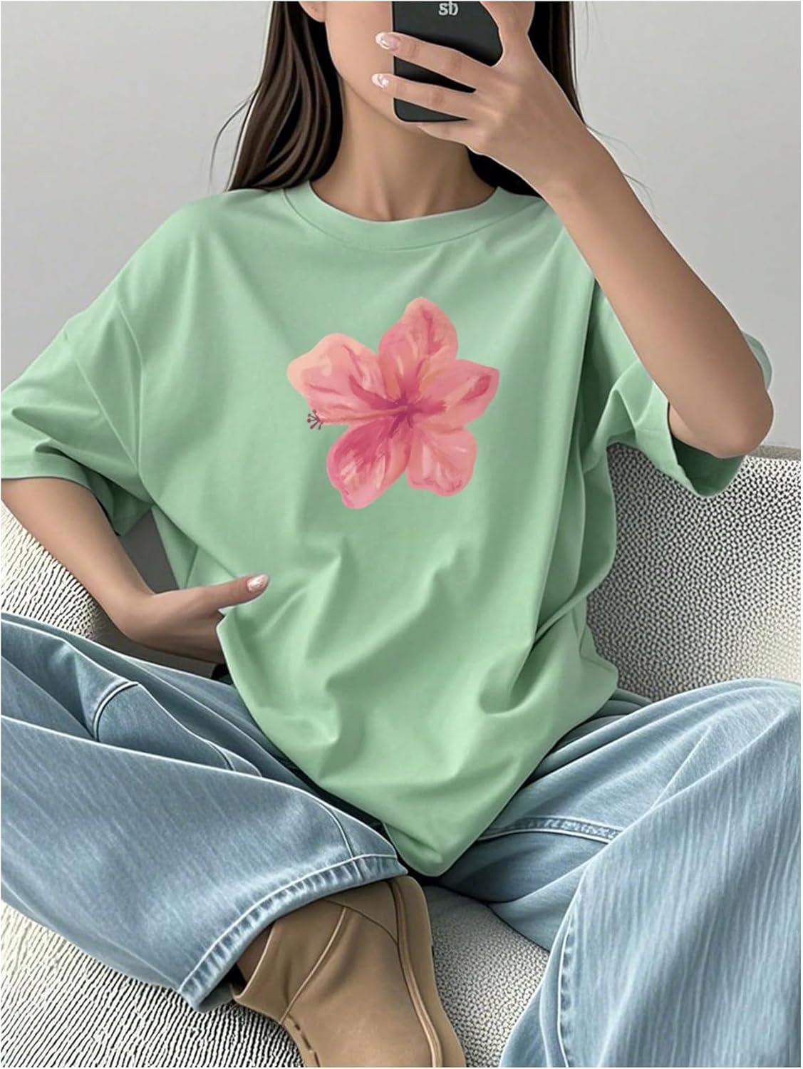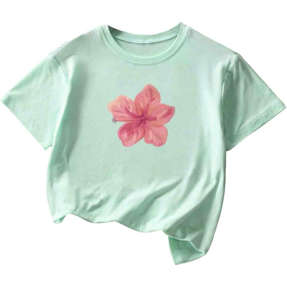 Girl’s Cherry Leopard Shirt Short Sleeve Loose Cute Summer T Shirt Trendy Aesthetic Baggy Tops(Floral Pink)