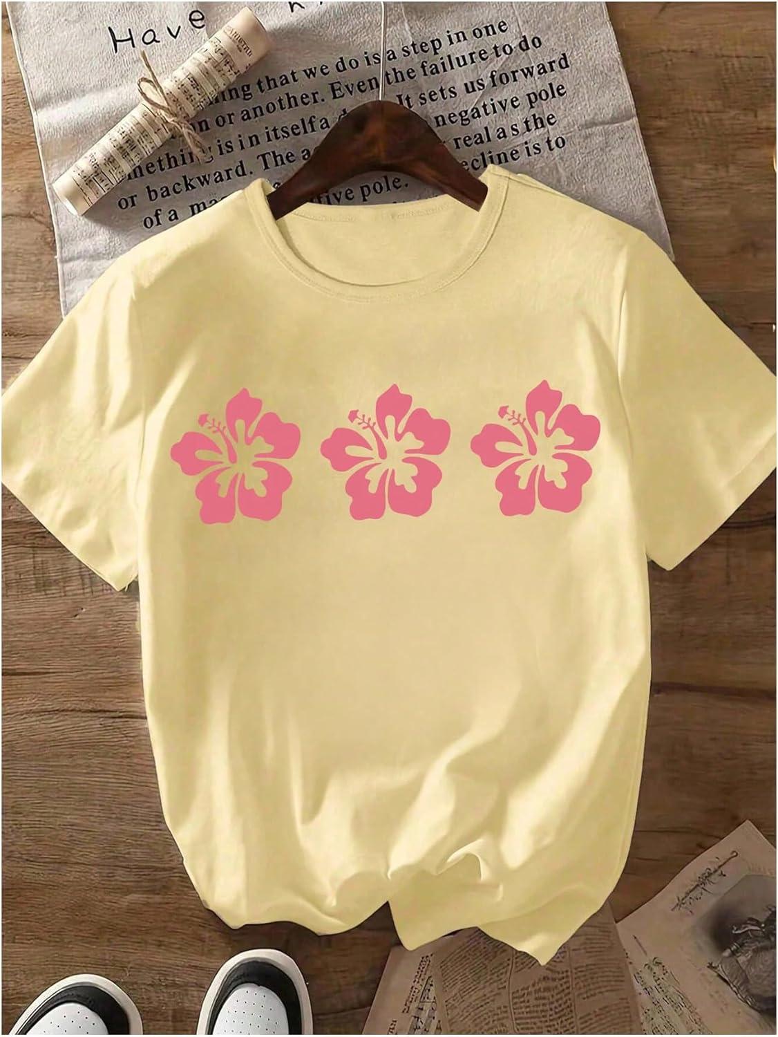 Girl's Floral Graphic Tees Short Sleeve Loose Summer Shirts for Girls Aesthetic Cute Clothes Trendy(Floral Yellow)