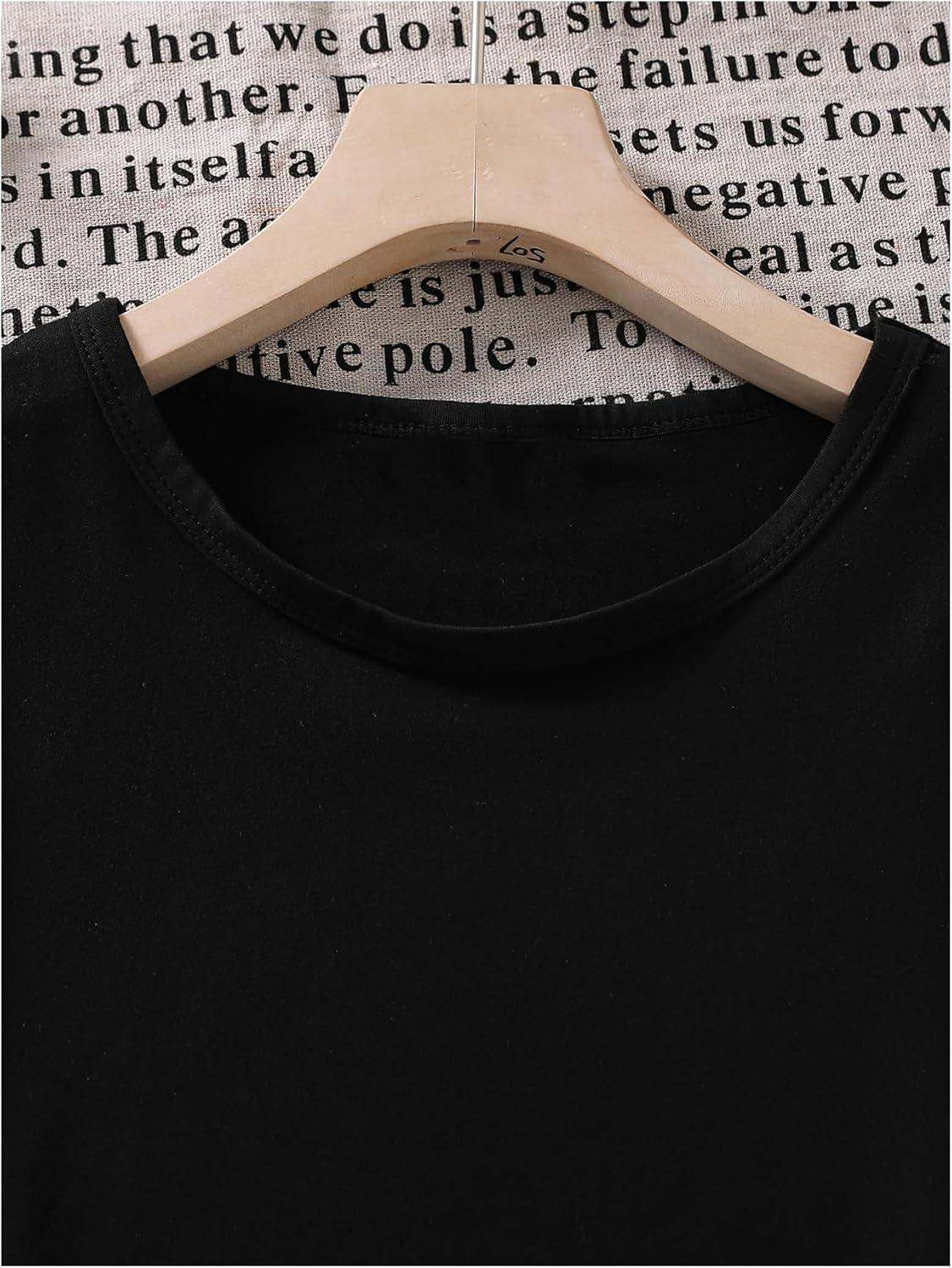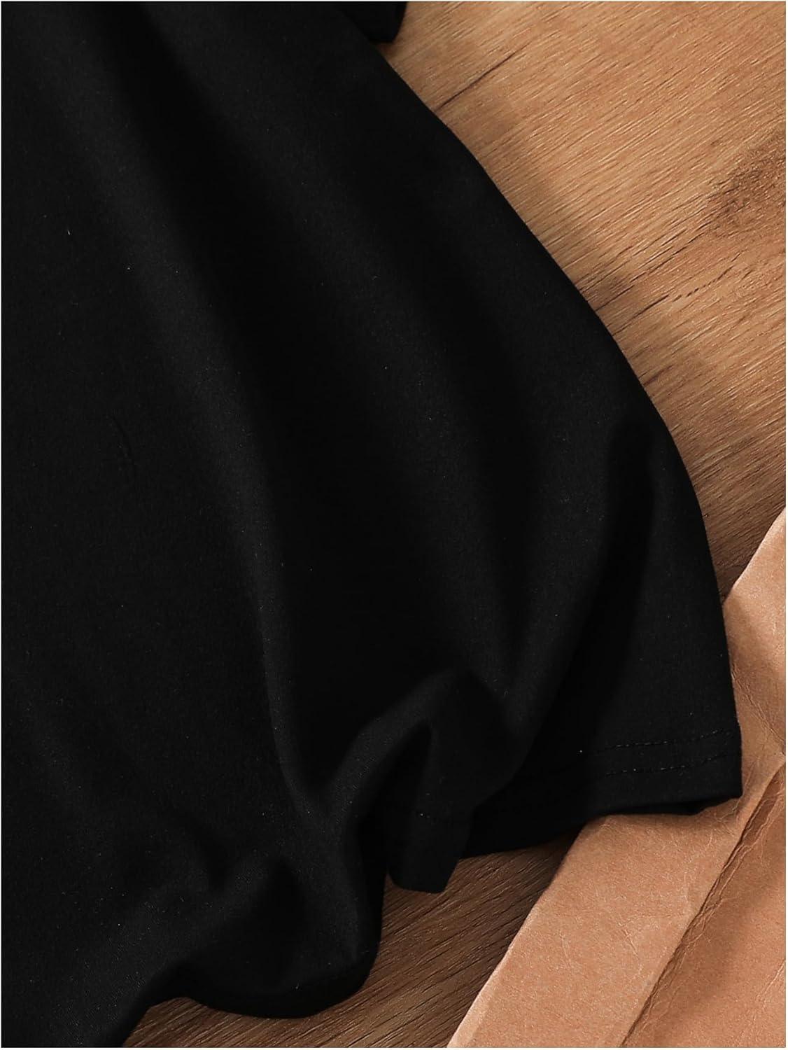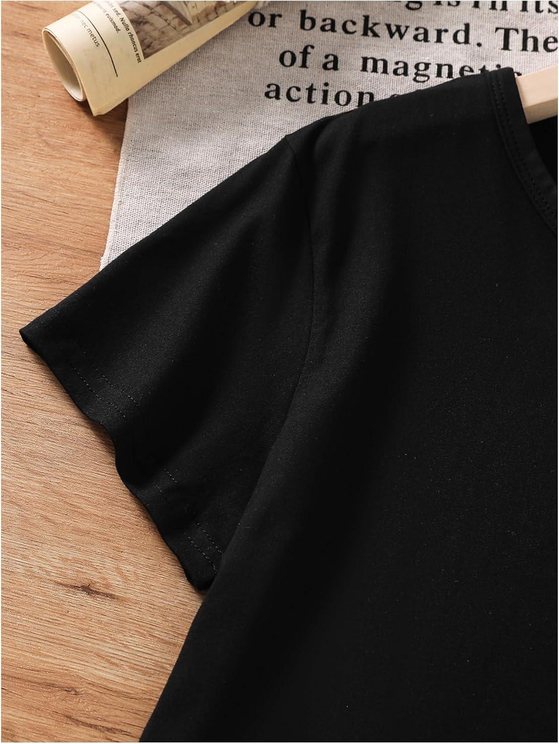 Girl’s Geometric Star Graphic Tee Tops Casual Summer Short Sleeve Crew Neck T Shirt(Black)