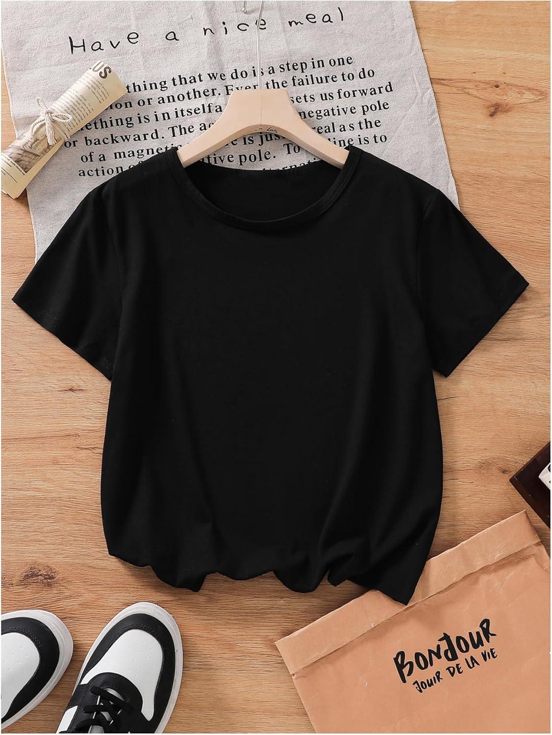 Girl's Geometric Star Graphic Tee Tops Casual Summer Short Sleeve Crew Neck T Shirt(Black)