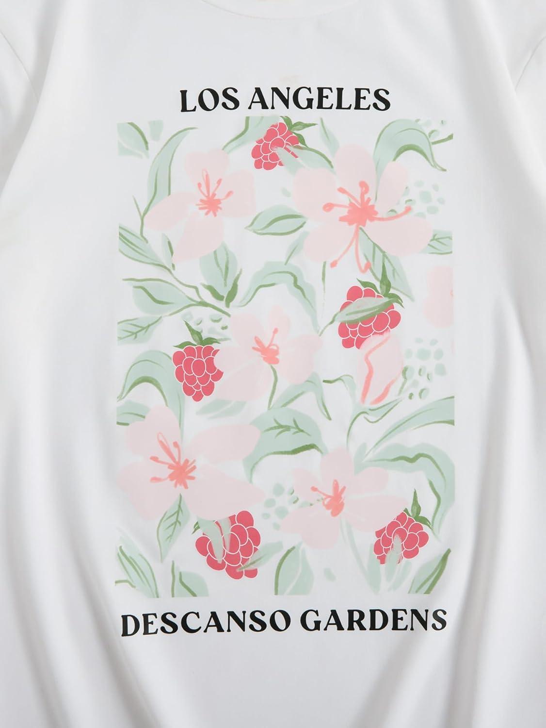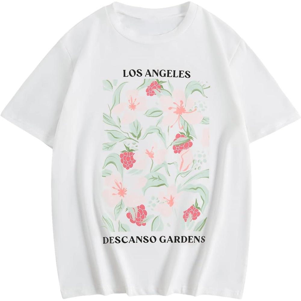 Girl’s Geometric Star Graphic Tee Tops Casual Summer Short Sleeve Crew Neck T Shirt(White Graphic)