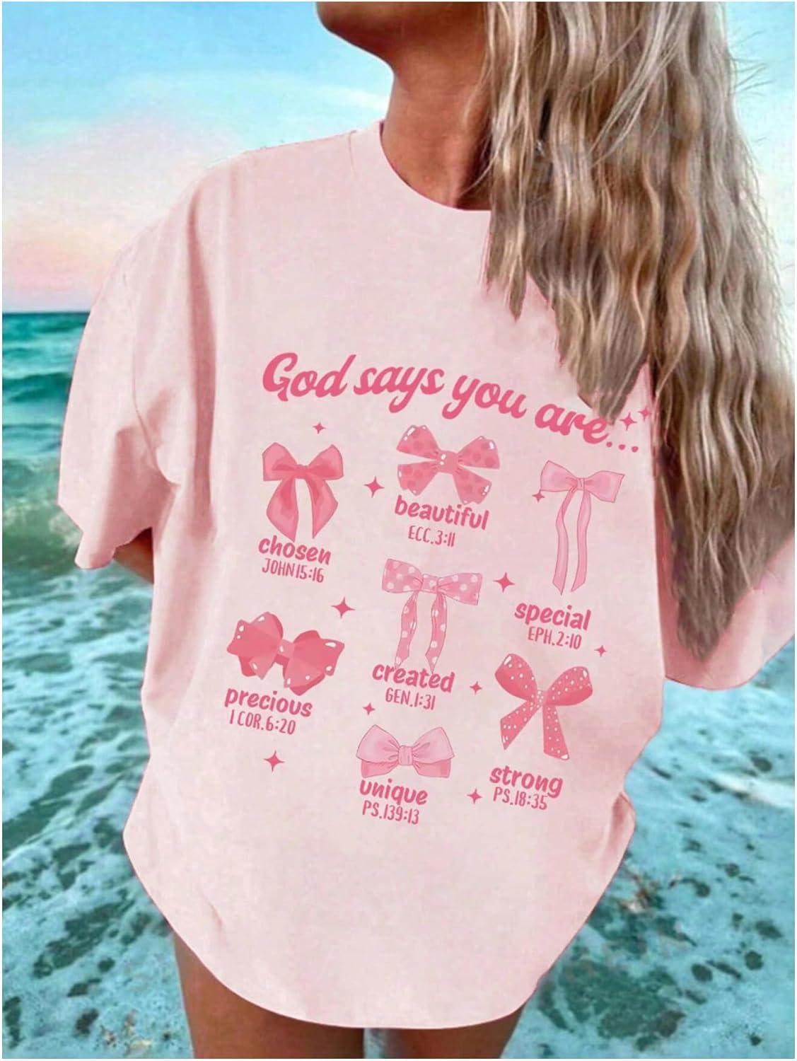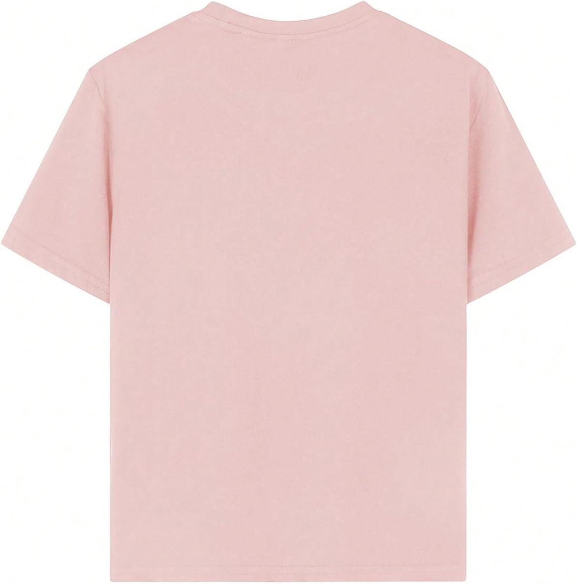 Girl's Graphic Tees Short Sleeve Crewneck T Shirts Casual Summer Tops Cute Preppy Clothes(Bowknot Pink)