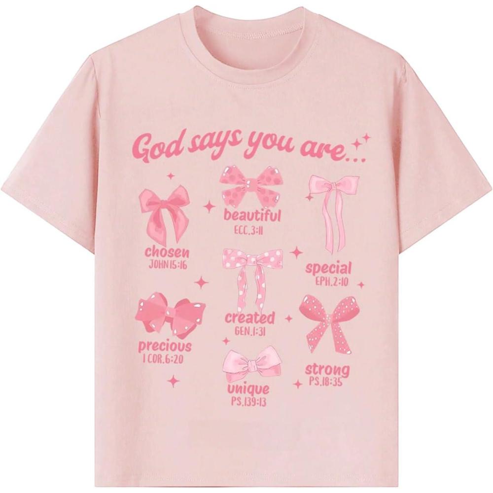 Girl’s Graphic Tees Short Sleeve Crewneck T Shirts Casual Summer Tops Cute Preppy Clothes(Bowknot Pink)