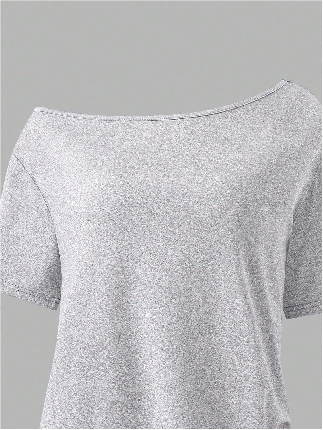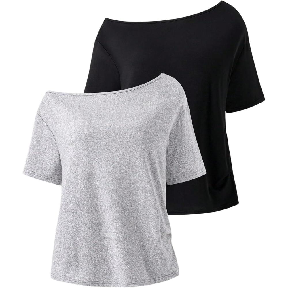 imageGirls Off The Shoulder Tops Short Sleeve Cute Summer T Shirts for Teens Girls Y2k Tops TrendyBlack and Grey