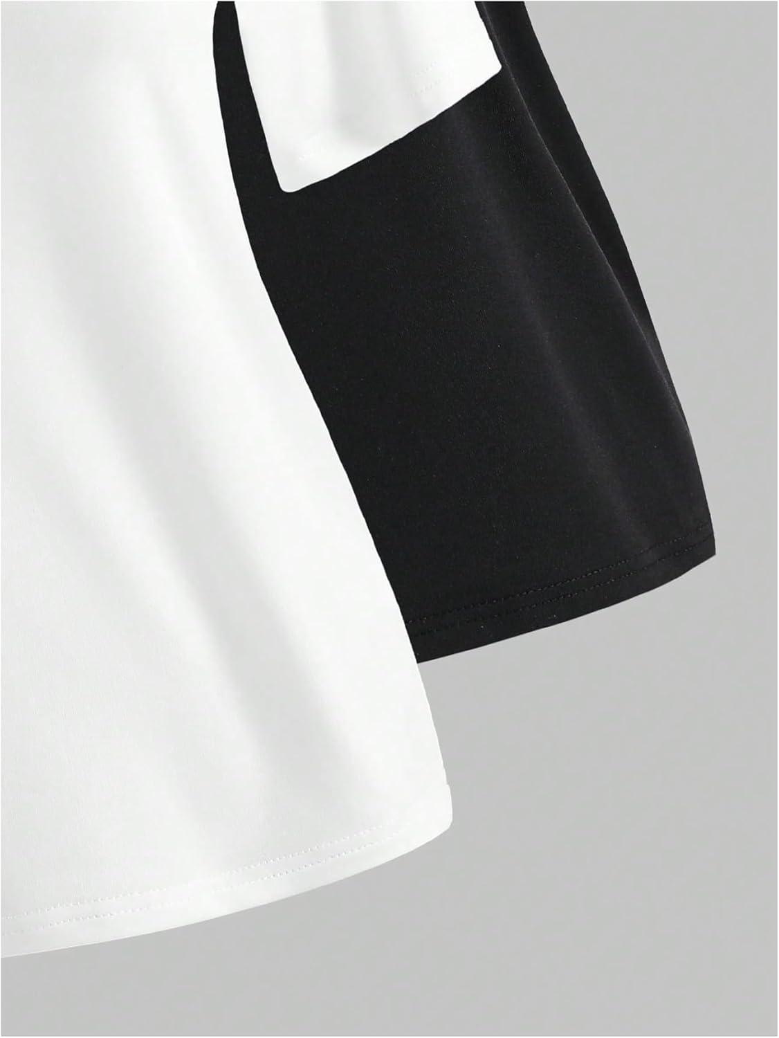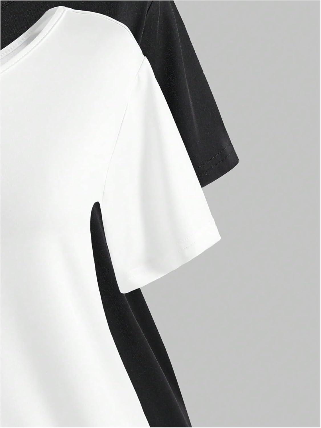 Girl’s Off The Shoulder Tops Short Sleeve Cute Summer T Shirts for Teens Girls Y2k Tops Trendy(Black and White)